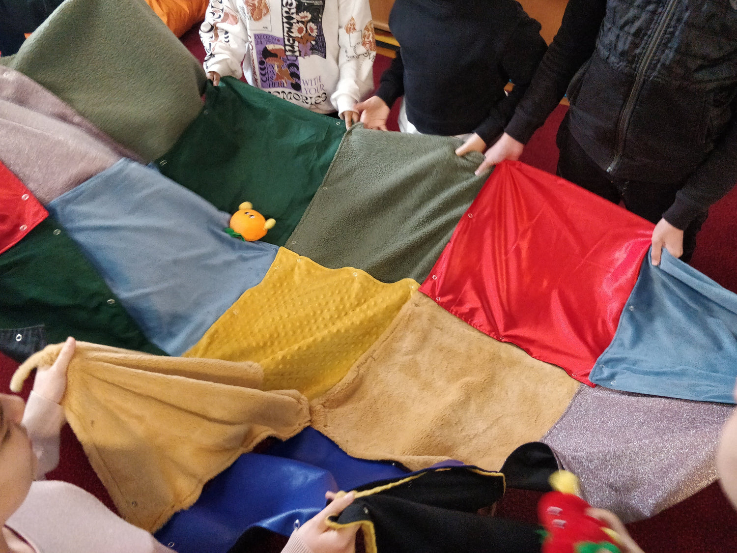 Motricité, relaxation, imagination, moments partagés : tout devient possible avec ces grands carrés à assembler.