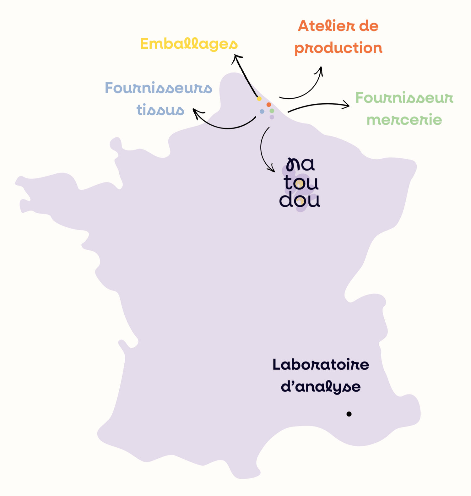 La majorité de nos matières sont certifiées OEKOTEX® STANDARD 100. Ou encore tous nos partenaires sont français pour limiter au maximum les transports.